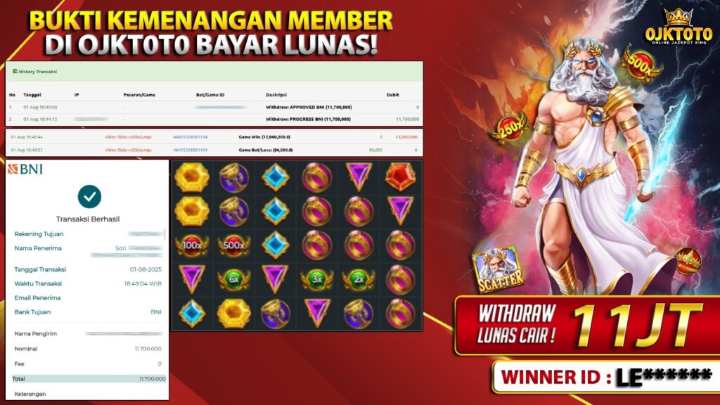 Bandar togel OJKTOTO merupakan bandar togel dan slot online yang membayar semua kemenangan member hingga lunas. Setiap pembayaran pada situs kami dilakukan dengan cara transfer ke rekening tujuan yang sudah di daftarkan pada situs togel online kami, Pembayaran hanya dapat di proses jika rekening yang di daftarkan telah valid dan dapat di transfer. Semua kemenangan member yang mendapatkan hadiah jackpot terbesar akan kami posting agar semua pemain dapat melihat bandar situs terpercaya OJKTOTO ini membayar semua kemenangan member hingga lunas. Setiap postingan yang kami posting akan kami lakukan sensor pada nomor rekening 4 digit dan nama rekening untuk menjaga privasi dan kerahasiaan member. Postingan Jackpot yang kami posting agar member atau pemain yang belum pernah bermain bisa melihat bandar togel Bukan Kaleng Kaleng Seperti OJKTOTO ini, Semua postingan jackpot yang kami posting dapat di lihat data keasliannya melalui nomor reff yang di tunjukan pada bank atau mbanking saat kita melakukan transfer
