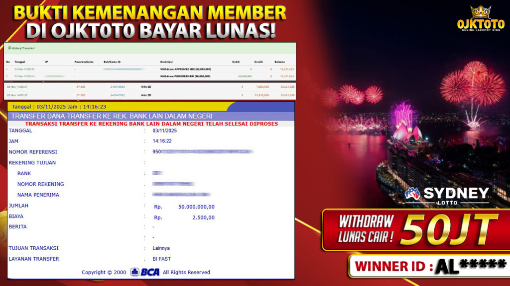 Bandar togel OJKTOTO merupakan bandar togel dan slot online yang membayar semua kemenangan member hingga lunas. Setiap pembayaran pada situs kami dilakukan dengan cara transfer ke rekening tujuan yang sudah di daftarkan pada situs togel online kami, Pembayaran hanya dapat di proses jika rekening yang di daftarkan telah valid dan dapat di transfer. Semua kemenangan member yang mendapatkan hadiah jackpot terbesar akan kami posting agar semua pemain dapat melihat bandar situs terpercaya OJKTOTO ini membayar semua kemenangan member hingga lunas. Setiap postingan yang kami posting akan kami lakukan sensor pada nomor rekening 4 digit dan nama rekening untuk menjaga privasi dan kerahasiaan member. Postingan Jackpot yang kami posting agar member atau pemain yang belum pernah bermain bisa melihat bandar togel Bukan Kaleng Kaleng Seperti OJKTOTO ini, Semua postingan jackpot yang kami posting dapat di lihat data keasliannya melalui nomor reff yang di tunjukan pada bank atau mbanking saat kita melakukan transfer.