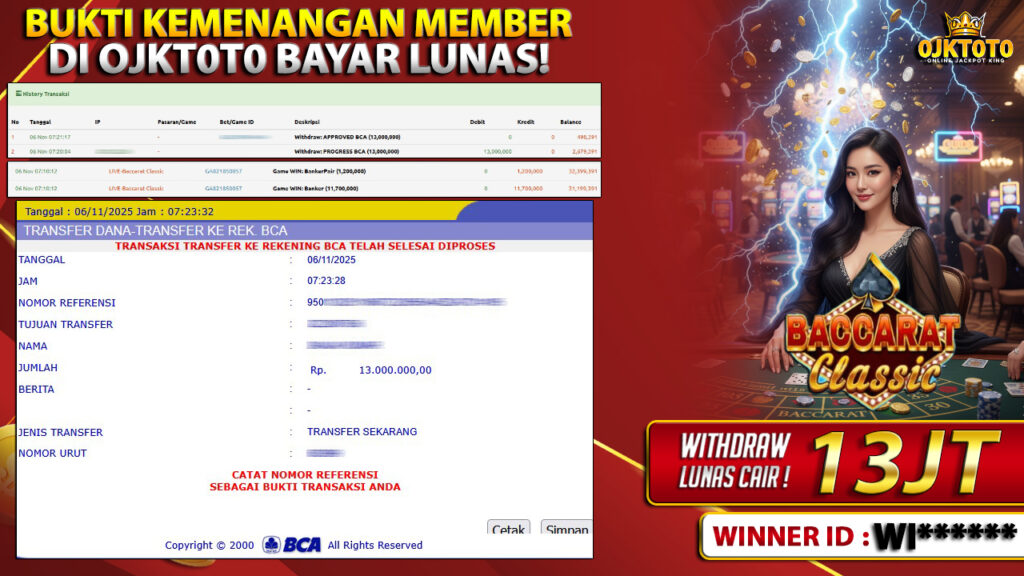 Bandar togel OJKTOTO merupakan bandar togel dan slot online yang membayar semua kemenangan member hingga lunas. Setiap pembayaran pada situs kami dilakukan dengan cara transfer ke rekening tujuan yang sudah di daftarkan pada situs togel online kami, Pembayaran hanya dapat di proses jika rekening yang di daftarkan telah valid dan dapat di transfer. Semua kemenangan member yang mendapatkan hadiah jackpot terbesar akan kami posting agar semua pemain dapat melihat bandar situs terpercaya OJKTOTO ini membayar semua kemenangan member hingga lunas. Setiap postingan yang kami posting akan kami lakukan sensor pada nomor rekening 4 digit dan nama rekening untuk menjaga privasi dan kerahasiaan member. Postingan Jackpot yang kami posting agar member atau pemain yang belum pernah bermain bisa melihat bandar togel Bukan Kaleng Kaleng Seperti OJKTOTO ini, Semua postingan jackpot yang kami posting dapat di lihat data keasliannya melalui nomor reff yang di tunjukan pada bank atau mbanking saat kita melakukan transfer.