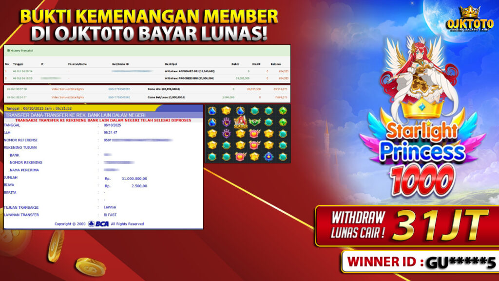 Bandar togel OJKTOTO merupakan bandar togel dan slot online yang membayar semua kemenangan member hingga lunas. Setiap pembayaran pada situs kami dilakukan dengan cara transfer ke rekening tujuan yang sudah di daftarkan pada situs togel online kami, Pembayaran hanya dapat di proses jika rekening yang di daftarkan telah valid dan dapat di transfer. Semua kemenangan member yang mendapatkan hadiah jackpot terbesar akan kami posting agar semua pemain dapat melihat bandar situs terpercaya OJKTOTO ini membayar semua kemenangan member hingga lunas. Setiap postingan yang kami posting akan kami lakukan sensor pada nomor rekening 4 digit dan nama rekening untuk menjaga privasi dan kerahasiaan member. Postingan Jackpot yang kami posting agar member atau pemain yang belum pernah bermain bisa melihat bandar togel Bukan Kaleng Kaleng Seperti OJKTOTO ini, Semua postingan jackpot yang kami posting dapat di lihat data keasliannya melalui nomor reff yang di tunjukan pada bank atau mbanking saat kita melakukan transfer.