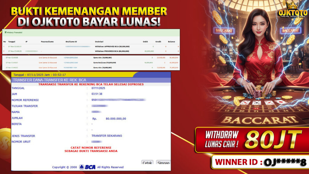 Bukti Kemenangan 07 NOVEMBER 2025 Di Game LIVE GAMES BACARRAT WD 80 Juta