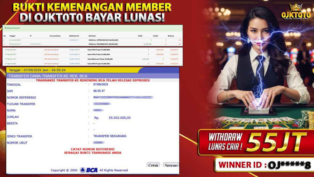 Bandar togel OJKTOTO merupakan bandar togel dan slot online yang membayar semua kemenangan member hingga lunas. Setiap pembayaran pada situs kami dilakukan dengan cara transfer ke rekening tujuan yang sudah di daftarkan pada situs togel online kami, Pembayaran hanya dapat di proses jika rekening yang di daftarkan telah valid dan dapat di transfer. Semua kemenangan member yang mendapatkan hadiah jackpot terbesar akan kami posting agar semua pemain dapat melihat bandar situs terpercaya OJKTOTO ini membayar semua kemenangan member hingga lunas. Setiap postingan yang kami posting akan kami lakukan sensor pada nomor rekening 4 digit dan nama rekening untuk menjaga privasi dan kerahasiaan member. Postingan Jackpot yang kami posting agar member atau pemain yang belum pernah bermain bisa melihat bandar togel Bukan Kaleng Kaleng Seperti OJKTOTO ini, Semua postingan jackpot yang kami posting dapat di lihat data keasliannya melalui nomor reff yang di tunjukan pada bank atau mbanking saat kita melakukan transfer.
