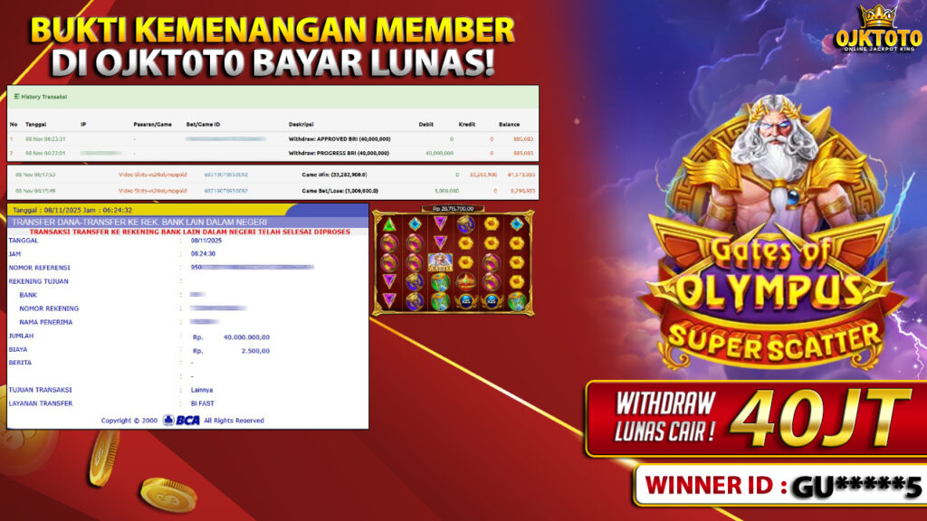 Bandar togel OJKTOTO merupakan bandar togel dan slot online yang membayar semua kemenangan member hingga lunas. Setiap pembayaran pada situs kami dilakukan dengan cara transfer ke rekening tujuan yang sudah di daftarkan pada situs togel online kami, Pembayaran hanya dapat di proses jika rekening yang di daftarkan telah valid dan dapat di transfer. Semua kemenangan member yang mendapatkan hadiah jackpot terbesar akan kami posting agar semua pemain dapat melihat bandar situs terpercaya OJKTOTO ini membayar semua kemenangan member hingga lunas. Setiap postingan yang kami posting akan kami lakukan sensor pada nomor rekening 4 digit dan nama rekening untuk menjaga privasi dan kerahasiaan member. Postingan Jackpot yang kami posting agar member atau pemain yang belum pernah bermain bisa melihat bandar togel Bukan Kaleng Kaleng Seperti OJKTOTO ini, Semua postingan jackpot yang kami posting dapat di lihat data keasliannya melalui nomor reff yang di tunjukan pada bank atau mbanking saat kita melakukan transfer.