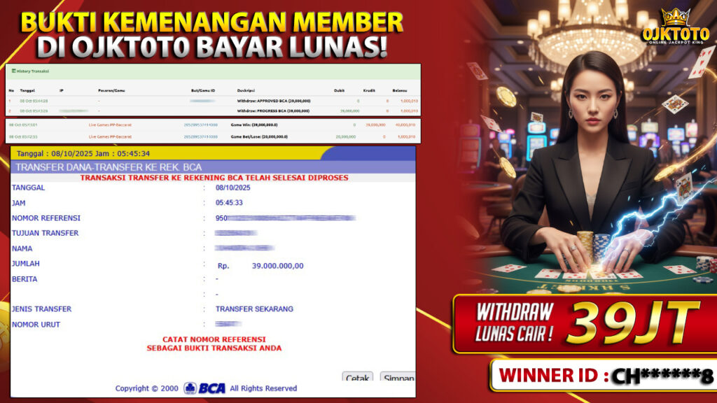 Bandar togel OJKTOTO merupakan bandar togel dan slot online yang membayar semua kemenangan member hingga lunas. Setiap pembayaran pada situs kami dilakukan dengan cara transfer ke rekening tujuan yang sudah di daftarkan pada situs togel online kami, Pembayaran hanya dapat di proses jika rekening yang di daftarkan telah valid dan dapat di transfer. Semua kemenangan member yang mendapatkan hadiah jackpot terbesar akan kami posting agar semua pemain dapat melihat bandar situs terpercaya OJKTOTO ini membayar semua kemenangan member hingga lunas. Setiap postingan yang kami posting akan kami lakukan sensor pada nomor rekening 4 digit dan nama rekening untuk menjaga privasi dan kerahasiaan member. Postingan Jackpot yang kami posting agar member atau pemain yang belum pernah bermain bisa melihat bandar togel Bukan Kaleng Kaleng Seperti OJKTOTO ini, Semua postingan jackpot yang kami posting dapat di lihat data keasliannya melalui nomor reff yang di tunjukan pada bank atau mbanking saat kita melakukan transfer.