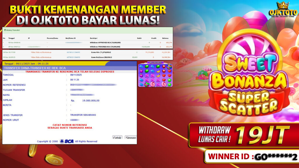 Bukti Kemenangan 09 NOVEMBER 2025 Di Game PRAGMATIC PLAY SWEET BONANZA SUPER SCATTER WD 19 Juta