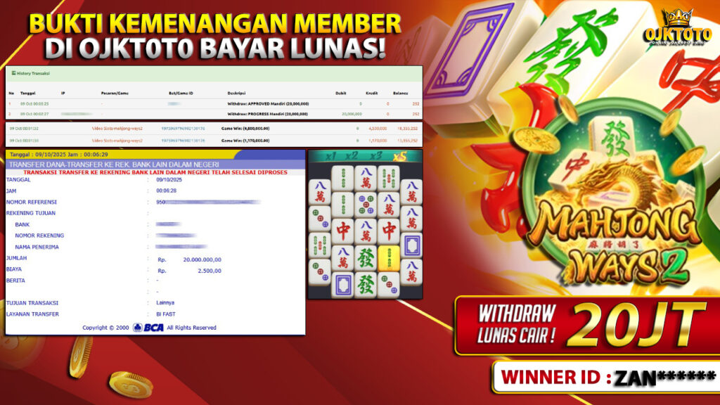 Bandar togel OJKTOTO merupakan bandar togel dan slot online yang membayar semua kemenangan member hingga lunas. Setiap pembayaran pada situs kami dilakukan dengan cara transfer ke rekening tujuan yang sudah di daftarkan pada situs togel online kami, Pembayaran hanya dapat di proses jika rekening yang di daftarkan telah valid dan dapat di transfer. Semua kemenangan member yang mendapatkan hadiah jackpot terbesar akan kami posting agar semua pemain dapat melihat bandar situs terpercaya OJKTOTO ini membayar semua kemenangan member hingga lunas. Setiap postingan yang kami posting akan kami lakukan sensor pada nomor rekening 4 digit dan nama rekening untuk menjaga privasi dan kerahasiaan member. Postingan Jackpot yang kami posting agar member atau pemain yang belum pernah bermain bisa melihat bandar togel Bukan Kaleng Kaleng Seperti OJKTOTO ini, Semua postingan jackpot yang kami posting dapat di lihat data keasliannya melalui nomor reff yang di tunjukan pada bank atau mbanking saat kita melakukan transfer