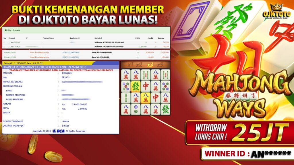 Bandar togel OJKTOTO merupakan bandar togel dan slot online yang membayar semua kemenangan member hingga lunas. Setiap pembayaran pada situs kami dilakukan dengan cara transfer ke rekening tujuan yang sudah di daftarkan pada situs togel online kami, Pembayaran hanya dapat di proses jika rekening yang di daftarkan telah valid dan dapat di transfer. Semua kemenangan member yang mendapatkan hadiah jackpot terbesar akan kami posting agar semua pemain dapat melihat bandar situs terpercaya OJKTOTO ini membayar semua kemenangan member hingga lunas. Setiap postingan yang kami posting akan kami lakukan sensor pada nomor rekening 4 digit dan nama rekening untuk menjaga privasi dan kerahasiaan member. Postingan Jackpot yang kami posting agar member atau pemain yang belum pernah bermain bisa melihat bandar togel Bukan Kaleng Kaleng Seperti OJKTOTO ini, Semua postingan jackpot yang kami posting dapat di lihat data keasliannya melalui nomor reff yang di tunjukan pada bank atau mbanking saat kita melakukan transfer.