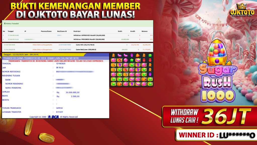 Bandar togel OJKTOTO merupakan bandar togel dan slot online yang membayar semua kemenangan member hingga lunas. Setiap pembayaran pada situs kami dilakukan dengan cara transfer ke rekening tujuan yang sudah di daftarkan pada situs togel online kami, Pembayaran hanya dapat di proses jika rekening yang di daftarkan telah valid dan dapat di transfer. Semua kemenangan member yang mendapatkan hadiah jackpot terbesar akan kami posting agar semua pemain dapat melihat bandar situs terpercaya OJKTOTO ini membayar semua kemenangan member hingga lunas. Setiap postingan yang kami posting akan kami lakukan sensor pada nomor rekening 4 digit dan nama rekening untuk menjaga privasi dan kerahasiaan member. Postingan Jackpot yang kami posting agar member atau pemain yang belum pernah bermain bisa melihat bandar togel Bukan Kaleng Kaleng Seperti OJKTOTO ini, Semua postingan jackpot yang kami posting dapat di lihat data keasliannya melalui nomor reff yang di tunjukan pada bank atau mbanking saat kita melakukan transfer.
