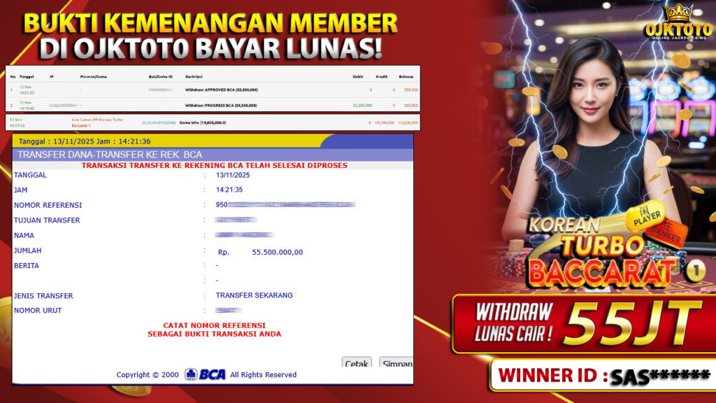 Bukti Kemenangan 13 NOVEMBER 2025 Di LIVE GAME KOREAN TURBO BACARRAT WD 55 JUTA