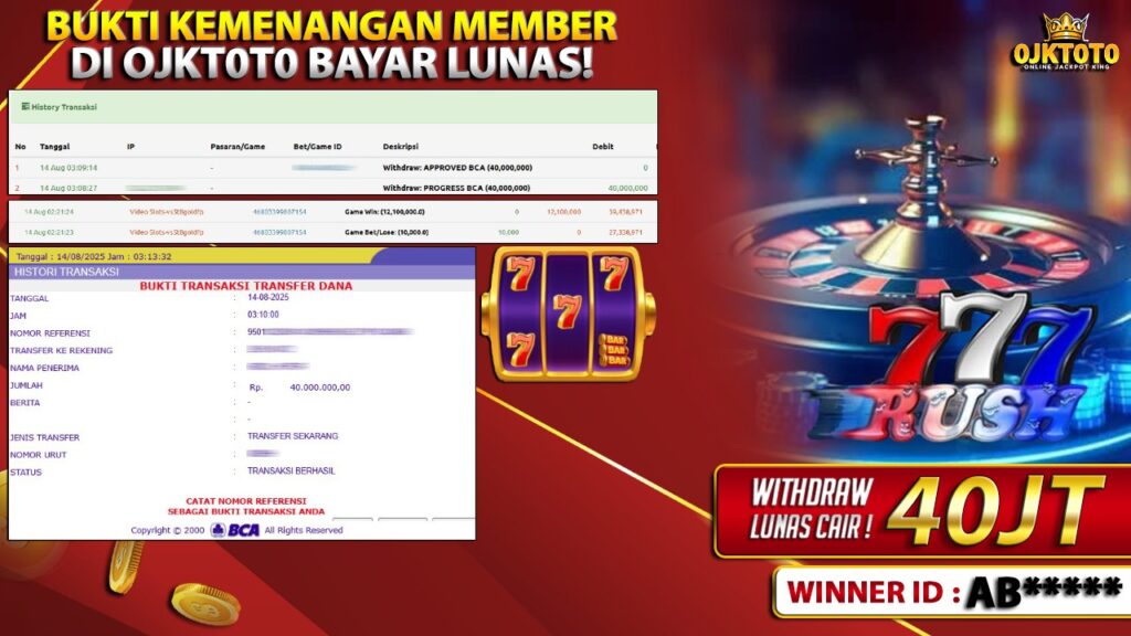 Bandar togel OJKTOTO merupakan bandar togel dan slot online yang membayar semua kemenangan member hingga lunas. Setiap pembayaran pada situs kami dilakukan dengan cara transfer ke rekening tujuan yang sudah di daftarkan pada situs togel online kami, Pembayaran hanya dapat di proses jika rekening yang di daftarkan telah valid dan dapat di transfer. Semua kemenangan member yang mendapatkan hadiah jackpot terbesar akan kami posting agar semua pemain dapat melihat bandar situs terpercaya OJKTOTO ini membayar semua kemenangan member hingga lunas. Setiap postingan yang kami posting akan kami lakukan sensor pada nomor rekening 4 digit dan nama rekening untuk menjaga privasi dan kerahasiaan member. Postingan Jackpot yang kami posting agar member atau pemain yang belum pernah bermain bisa melihat bandar togel Bukan Kaleng Kaleng Seperti OJKTOTO ini, Semua postingan jackpot yang kami posting dapat di lihat data keasliannya melalui nomor reff yang di tunjukan pada bank atau mbanking saat kita melakukan transfer.