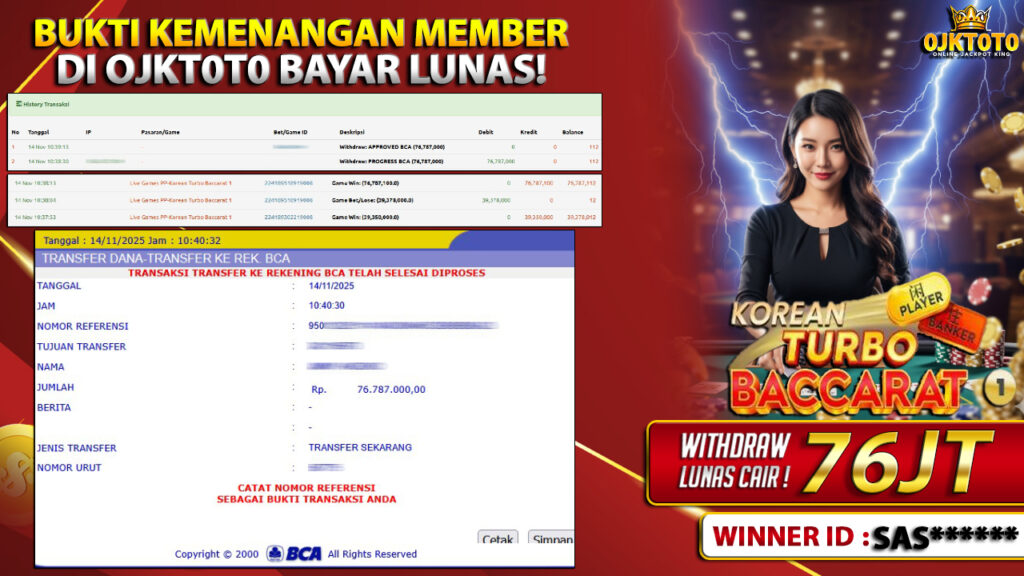 Bukti Kemenangan 14 NOVEMBER 2025 Di LIVE GAME KOREAN TURBO BACARRAT WD 76 JUTA