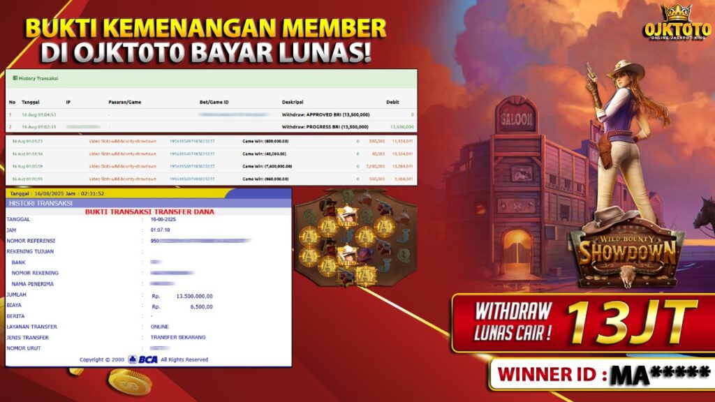 Bandar togel OJKTOTO merupakan bandar togel dan slot online yang membayar semua kemenangan member hingga lunas. Setiap pembayaran pada situs kami dilakukan dengan cara transfer ke rekening tujuan yang sudah di daftarkan pada situs togel online kami, Pembayaran hanya dapat di proses jika rekening yang di daftarkan telah valid dan dapat di transfer. Semua kemenangan member yang mendapatkan hadiah jackpot terbesar akan kami posting agar semua pemain dapat melihat bandar situs terpercaya OJKTOTO ini membayar semua kemenangan member hingga lunas. Setiap postingan yang kami posting akan kami lakukan sensor pada nomor rekening 4 digit dan nama rekening untuk menjaga privasi dan kerahasiaan member. Postingan Jackpot yang kami posting agar member atau pemain yang belum pernah bermain bisa melihat bandar togel Bukan Kaleng Kaleng Seperti OJKTOTO ini, Semua postingan jackpot yang kami posting dapat di lihat data keasliannya melalui nomor reff yang di tunjukan pada bank atau mbanking saat kita melakukan transfer
