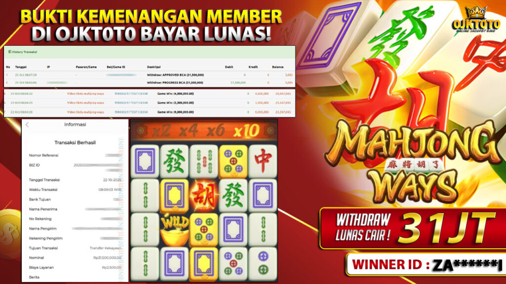 Bandar togel OJKTOTO merupakan bandar togel dan slot online yang membayar semua kemenangan member hingga lunas. Setiap pembayaran pada situs kami dilakukan dengan cara transfer ke rekening tujuan yang sudah di daftarkan pada situs togel online kami, Pembayaran hanya dapat di proses jika rekening yang di daftarkan telah valid dan dapat di transfer. Semua kemenangan member yang mendapatkan hadiah jackpot terbesar akan kami posting agar semua pemain dapat melihat bandar situs terpercaya OJKTOTO ini membayar semua kemenangan member hingga lunas. Setiap postingan yang kami posting akan kami lakukan sensor pada nomor rekening 4 digit dan nama rekening untuk menjaga privasi dan kerahasiaan member. Postingan Jackpot yang kami posting agar member atau pemain yang belum pernah bermain bisa melihat bandar togel Bukan Kaleng Kaleng Seperti OJKTOTO ini, Semua postingan jackpot yang kami posting dapat di lihat data keasliannya melalui nomor reff yang di tunjukan pada bank atau mbanking saat kita melakukan transfer.