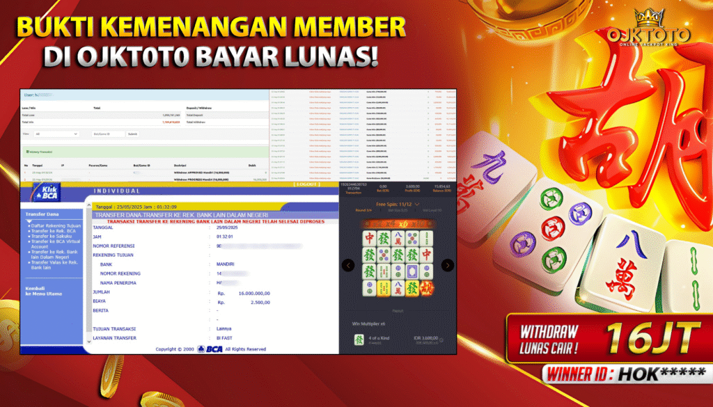 Bandar togel OJKTOTO merupakan bandar togel dan slot online yang membayar semua kemenangan member hingga lunas. Setiap pembayaran pada situs kami dilakukan dengan cara transfer ke rekening tujuan yang sudah di daftarkan pada situs togel online kami, Pembayaran hanya dapat di proses jika rekening yang di daftarkan telah valid dan dapat di transfer. Semua kemenangan member yang mendapatkan hadiah jackpot terbesar akan kami posting agar semua pemain dapat melihat bandar situs terpercaya OJKTOTO ini membayar semua kemenangan member hingga lunas. Setiap postingan yang kami posting akan kami lakukan sensor pada nomor rekening 4 digit dan nama rekening untuk menjaga privasi dan kerahasiaan member. Postingan Jackpot yang kami posting agar member atau pemain yang belum pernah bermain bisa melihat bandar togel Bukan Kaleng Kaleng Seperti OJKTOTO ini, Semua postingan jackpot yang kami posting dapat di lihat data keasliannya melalui nomor reff yang di tunjukan pada bank atau mbanking saat kita melakukan transfer.