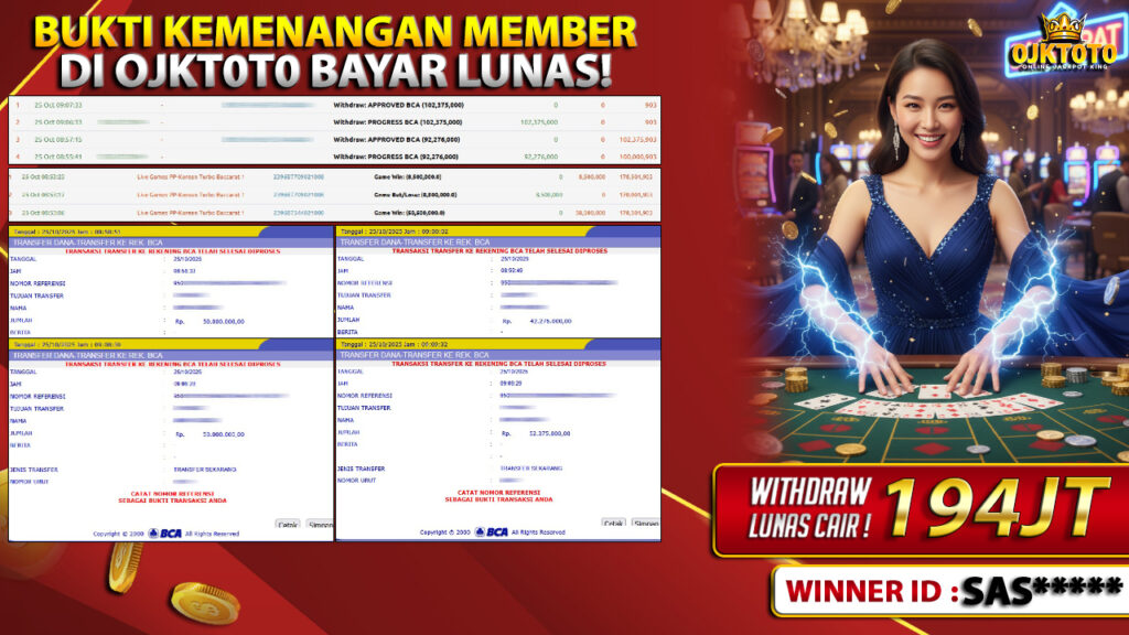 Bandar togel OJKTOTO merupakan bandar togel dan slot online yang membayar semua kemenangan member hingga lunas. Setiap pembayaran pada situs kami dilakukan dengan cara transfer ke rekening tujuan yang sudah di daftarkan pada situs togel online kami, Pembayaran hanya dapat di proses jika rekening yang di daftarkan telah valid dan dapat di transfer. Semua kemenangan member yang mendapatkan hadiah jackpot terbesar akan kami posting agar semua pemain dapat melihat bandar situs terpercaya OJKTOTO ini membayar semua kemenangan member hingga lunas. Setiap postingan yang kami posting akan kami lakukan sensor pada nomor rekening 4 digit dan nama rekening untuk menjaga privasi dan kerahasiaan member. Postingan Jackpot yang kami posting agar member atau pemain yang belum pernah bermain bisa melihat bandar togel Bukan Kaleng Kaleng Seperti OJKTOTO ini, Semua postingan jackpot yang kami posting dapat di lihat data keasliannya melalui nomor reff yang di tunjukan pada bank atau mbanking saat kita melakukan transfer.