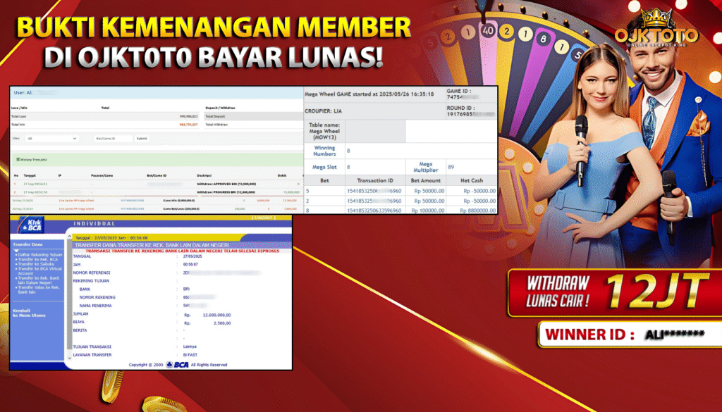Bandar togel OJKTOTO merupakan bandar togel dan slot online yang membayar semua kemenangan member hingga lunas. Setiap pembayaran pada situs kami dilakukan dengan cara transfer ke rekening tujuan yang sudah di daftarkan pada situs togel online kami, Pembayaran hanya dapat di proses jika rekening yang di daftarkan telah valid dan dapat di transfer. Semua kemenangan member yang mendapatkan hadiah jackpot terbesar akan kami posting agar semua pemain dapat melihat bandar situs terpercaya OJKTOTO ini membayar semua kemenangan member hingga lunas. Setiap postingan yang kami posting akan kami lakukan sensor pada nomor rekening 4 digit dan nama rekening untuk menjaga privasi dan kerahasiaan member. Postingan Jackpot yang kami posting agar member atau pemain yang belum pernah bermain bisa melihat bandar togel Bukan Kaleng Kaleng Seperti OJKTOTO ini, Semua postingan jackpot yang kami posting dapat di lihat data keasliannya melalui nomor reff yang di tunjukan pada bank atau mbanking saat kita melakukan transfer.