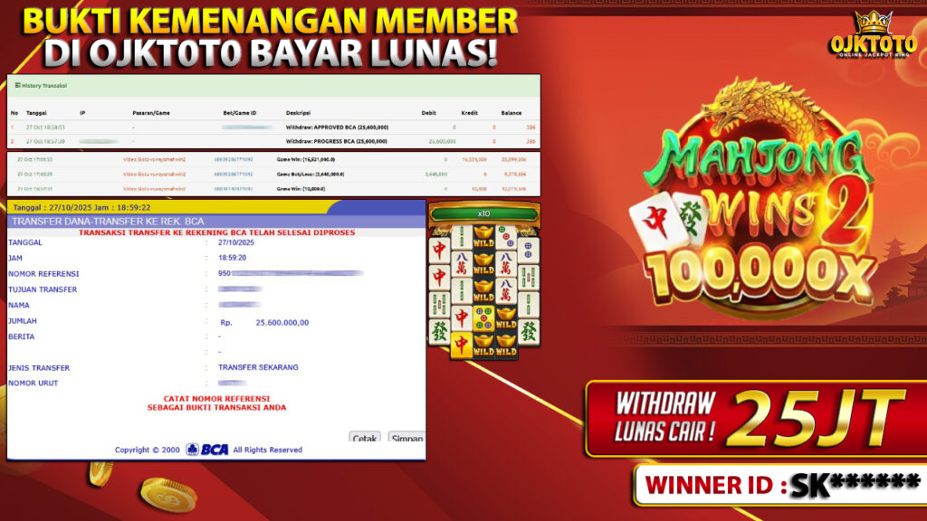 Bukti Kemenangan 27 OKTOBER 2025 Di Game PRAGMATIC PLAY MAHJONG WINS 2 WD 25 Juta