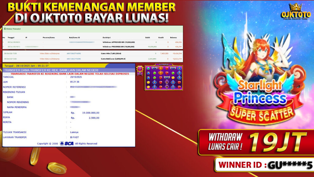 Bandar togel OJKTOTO merupakan bandar togel dan slot online yang membayar semua kemenangan member hingga lunas. Setiap pembayaran pada situs kami dilakukan dengan cara transfer ke rekening tujuan yang sudah di daftarkan pada situs togel online kami, Pembayaran hanya dapat di proses jika rekening yang di daftarkan telah valid dan dapat di transfer. Semua kemenangan member yang mendapatkan hadiah jackpot terbesar akan kami posting agar semua pemain dapat melihat bandar situs terpercaya OJKTOTO ini membayar semua kemenangan member hingga lunas. Setiap postingan yang kami posting akan kami lakukan sensor pada nomor rekening 4 digit dan nama rekening untuk menjaga privasi dan kerahasiaan member. Postingan Jackpot yang kami posting agar member atau pemain yang belum pernah bermain bisa melihat bandar togel Bukan Kaleng Kaleng Seperti OJKTOTO ini, Semua postingan jackpot yang kami posting dapat di lihat data keasliannya melalui nomor reff yang di tunjukan pada bank atau mbanking saat kita melakukan transfer