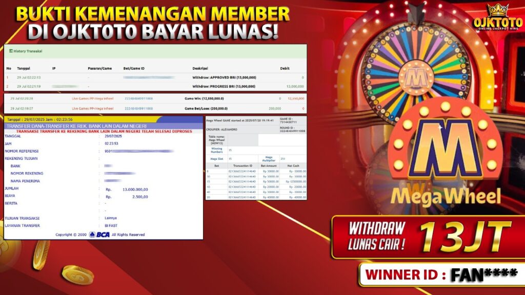 Bandar togel OJKTOTO merupakan bandar togel dan slot online yang membayar semua kemenangan member hingga lunas. Setiap pembayaran pada situs kami dilakukan dengan cara transfer ke rekening tujuan yang sudah di daftarkan pada situs togel online kami, Pembayaran hanya dapat di proses jika rekening yang di daftarkan telah valid dan dapat di transfer. Semua kemenangan member yang mendapatkan hadiah jackpot terbesar akan kami posting agar semua pemain dapat melihat bandar situs terpercaya OJKTOTO ini membayar semua kemenangan member hingga lunas. Setiap postingan yang kami posting akan kami lakukan sensor pada nomor rekening 4 digit dan nama rekening untuk menjaga privasi dan kerahasiaan member. Postingan Jackpot yang kami posting agar member atau pemain yang belum pernah bermain bisa melihat bandar togel Bukan Kaleng Kaleng Seperti OJKTOTO ini, Semua postingan jackpot yang kami posting dapat di lihat data keasliannya melalui nomor reff yang di tunjukan pada bank atau mbanking saat kita melakukan transfer.