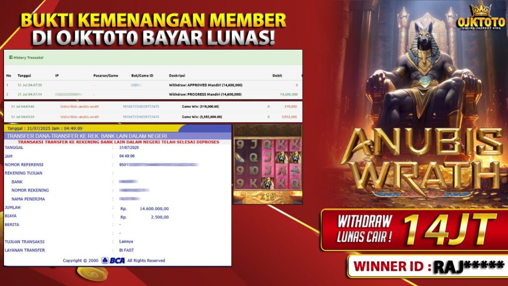 Bandar togel OJKTOTO merupakan bandar togel dan slot online yang membayar semua kemenangan member hingga lunas. Setiap pembayaran pada situs kami dilakukan dengan cara transfer ke rekening tujuan yang sudah di daftarkan pada situs togel online kami, Pembayaran hanya dapat di proses jika rekening yang di daftarkan telah valid dan dapat di transfer. Semua kemenangan member yang mendapatkan hadiah jackpot terbesar akan kami posting agar semua pemain dapat melihat bandar situs terpercaya OJKTOTO ini membayar semua kemenangan member hingga lunas. Setiap postingan yang kami posting akan kami lakukan sensor pada nomor rekening 4 digit dan nama rekening untuk menjaga privasi dan kerahasiaan member. Postingan Jackpot yang kami posting agar member atau pemain yang belum pernah bermain bisa melihat bandar togel Bukan Kaleng Kaleng Seperti OJKTOTO ini, Semua postingan jackpot yang kami posting dapat di lihat data keasliannya melalui nomor reff yang di tunjukan pada bank atau mbanking saat kita melakukan transfer