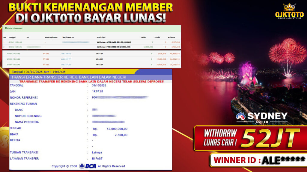 Bukti Kemenangan 31 OKTOBER 2025 Di Game PASARAN SYDNEY LOTTO WD 52 Juta
